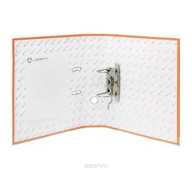 Ширина корешка - 80 мм;  Формат - А4;  Карман - на корешке папки: да;  Цвет - оранжевый;   Наличие уголка - металлический;  Материал внутренней обложки папки - картон;  Материал обложки - ПВХ;  Наличие кармана на внутренней обложке - нет.