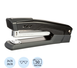 Корпус – пластик;     Цвет - черный;     Максимальное количество листов - до 30;     Тип скоб -  №24/6, 26/6;    Механизм подачи скоб - металлический;    ...