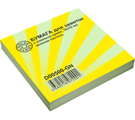 ВидСтикер Цвет бумагиЗеленый МатериалБумага Плотность70 г/м2 Длина блока76 мм
