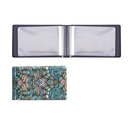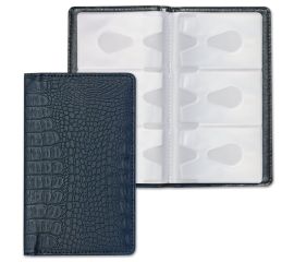 На 96 визитных карточек. Четырехрядная. Антибликовая фактура карманов. Внутренний блок - мягкий ПВХ. Размер - 110х240 мм.