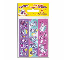 Тип закладки: закладка с магнитом Пол: женский Дизайн: ЕДИНОРОГИ Количество в комплекте: 6 шт. Цвет шнурка-завязки: нет Материал: картон Длина: 196 мм Ширина: 25 мм