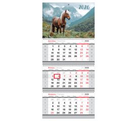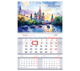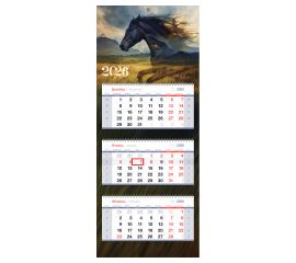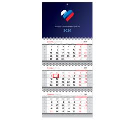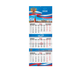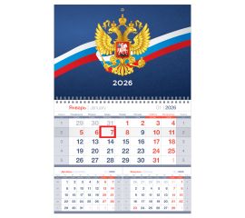 Тип календаря: квартальный на 3 гребнях Год: 2026 Тип скрепления: гребень Размер: 29,5х76 см Внутренний блок: мелованная бумага Плотность внутреннего блока: 80 г/м2 Подложка: мелованный картон Плотность подложки: 250 г/м2 Курсор: да Пикколо: да Дизайн: Символика2 Календарная сетка:...