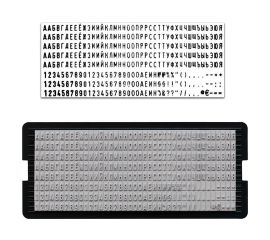 Размер шрифта, мм: 2,8, 3,1 Шрифт (язык кассы): русский Количество символов: 390 Система крепления символов: на одной ножке Состав кассы: буквы, знаки, цифры Серия: GRM