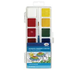 Количество цветов в наборе: 12 Серия: Школьные Добавка в основу: мед В комлекте: кисть Отделение для кисточки: да Форма кюветов: квадратная Упаковка: картонная коробка