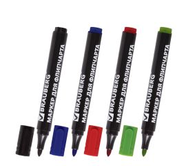 Цвет чернил: красный, зеленый, синий, черный Количество маркеров в наборе: 4 шт. Форма наконечника: круглая Толщина письма: 2,5 Непропитывающий: да Устойчив к засыханию: да Не протекает при перепаде давления: да