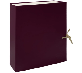 Назначение: для архивирования документов Размер (ВхШхГ): 330х240х120 мм Вмещает: до 1000 листов Откидная крышка: да Застежка: 2 х/б завязки Материал: переплетный картон/бумвинил Толщина картона: 1.8 мм Поставляется в разобранном виде: да Цвет: бордовый