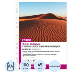Формат: А4 Серия: Standard Количество в комплекте: 100 шт. Толщина пленки: 45 мкм Ориентация: вертикальная Фактура: "апельсиновая корка"