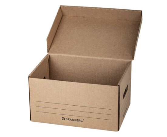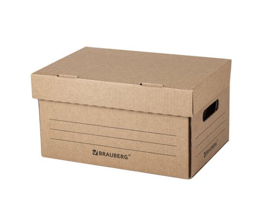 Короб архивный "Делопроизводство" (235х325х180 мм), с крышкой, гофрокартон, BRAUBERG, 129589