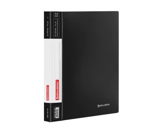 Папка на 2 кольцах BRAUBERG, стандарт, 25 мм, черная, до 120 листов, 0,8 мм, 221616
