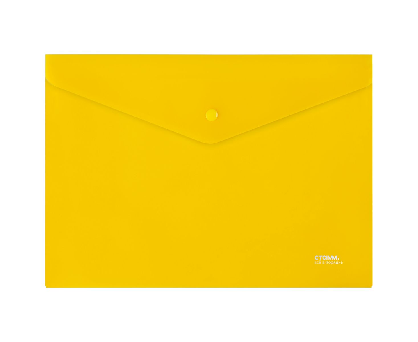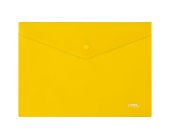 Папка-конверт на кнопке СТАММ А4, 180мкм, пластик, прозрачная, желтая, ММ-31021, 356713