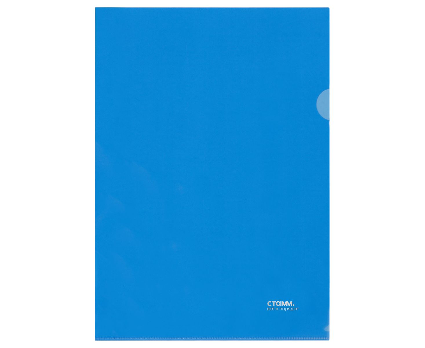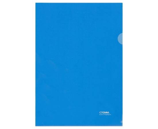 Папка-уголок СТАММ А4, 180мкм, пластик, прозрачная, синяя, ММ-30949, 356788