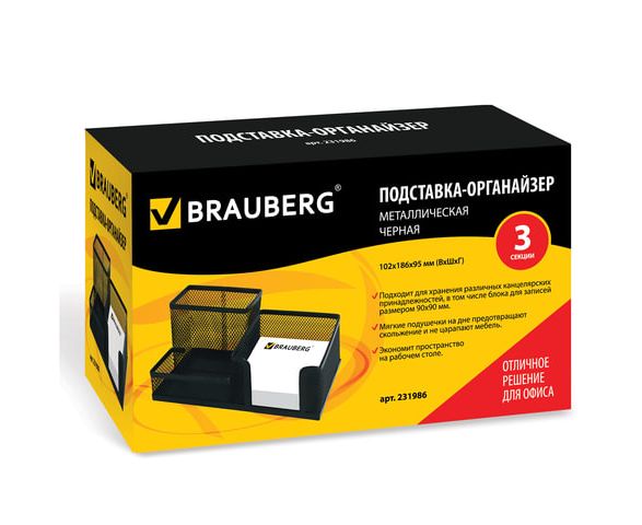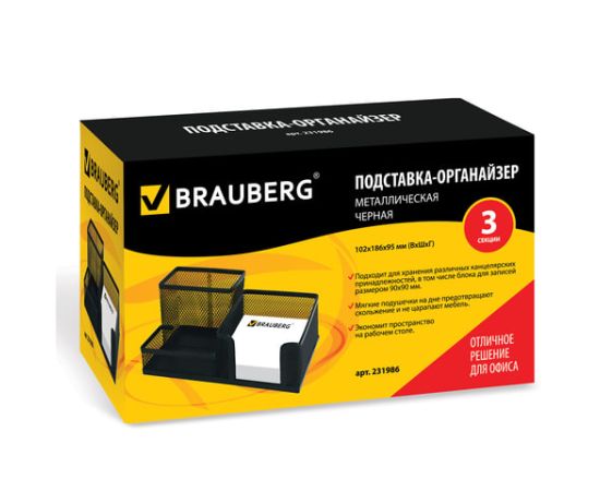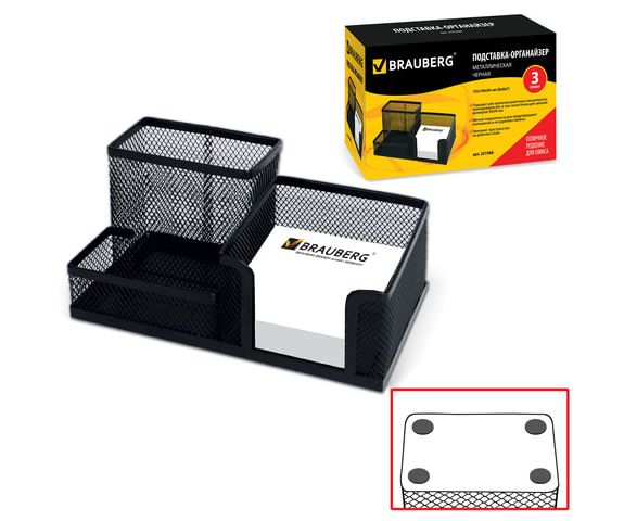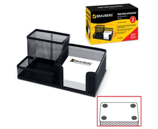 Подставка-органайзер BRAUBERG "Germanium", металлическая, 3 секции, 102х186х95 мм, черная, 231986