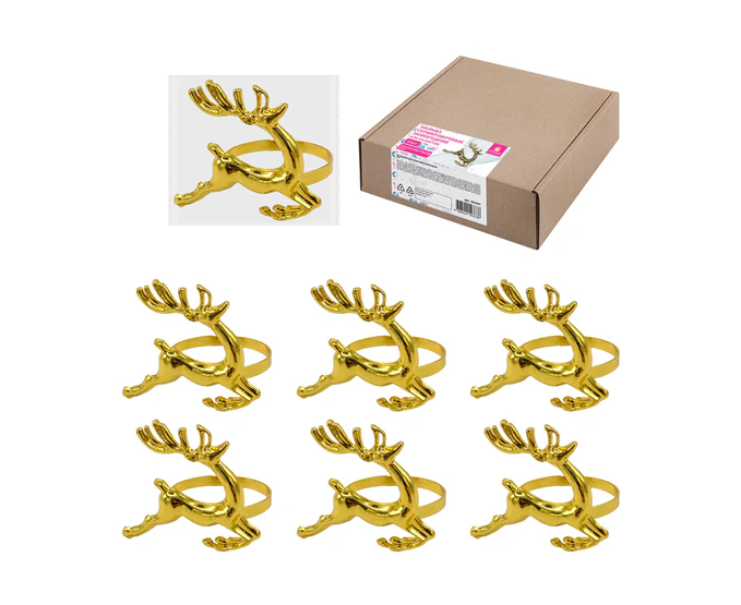 Кольца для салфеток новогодние, КОМПЛЕКТ 6 шт., 5,5 см, "Олени", золотистые, ЗОЛОТАЯ СКАЗКА, 592487