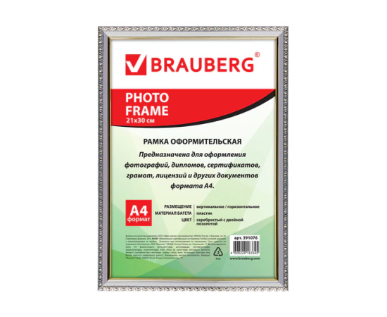 Рамка 21х30 см, пластик, багет 16 мм, BRAUBERG "HIT5", серебро с двойной позолотой, стекло, 391076