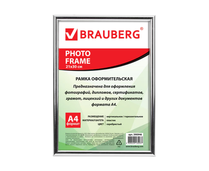 Рамка BRAUBERG HIT2 21*30см, пластик, серебро/золото (д/дипломов, сертификатов, грамот, фото), 390946