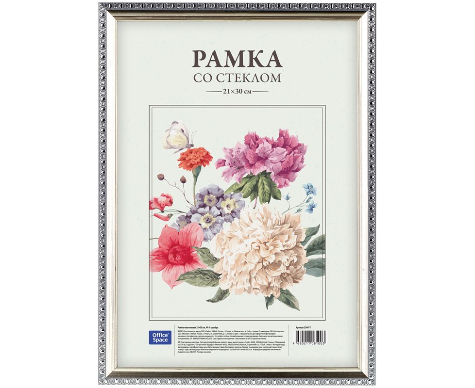 Рамка пластиковая 21*30см, OfficeSpace, № 9, серебро 234017
