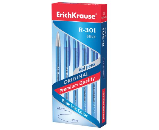 Ручка гелевая ERICH KRAUSE "R-301 Original Gel", корпус прозрачный, узел 0,5 мм, линия 0,4 мм, синяя, 40318