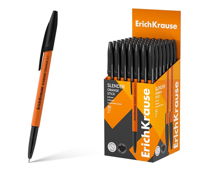 Ручка шариковая ErichKrause Slender Stick Orange, цвет черный 63090