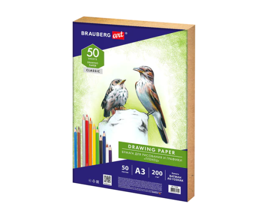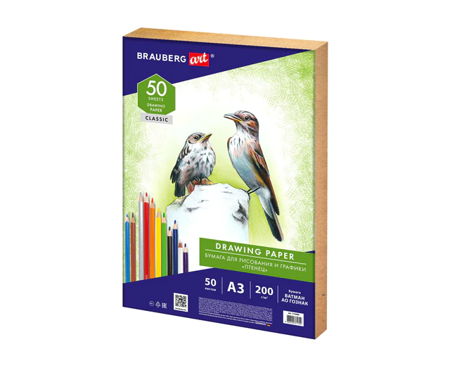 Бумага для рисования и графики А3, 50 л., 200 г/м2, ВАТМАН ГОЗНАК СПб, в коробке, BRAUBERG ART, 114490