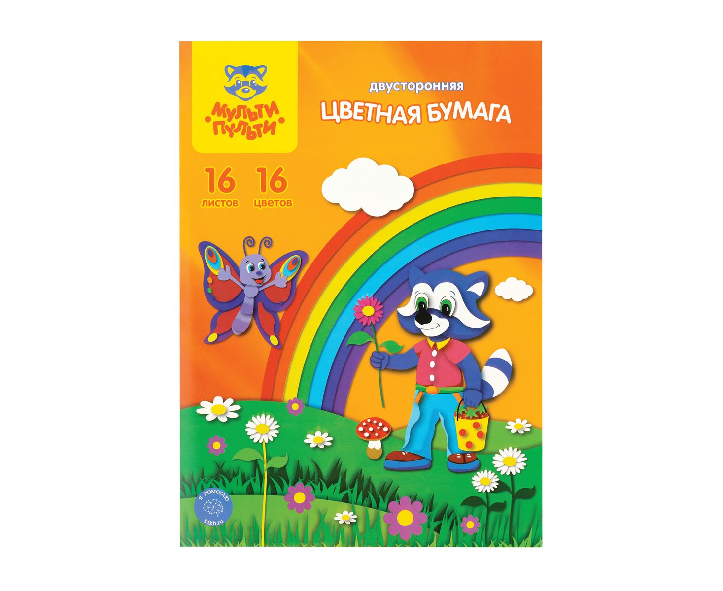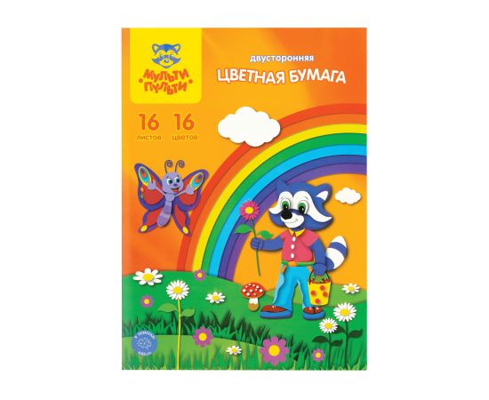Цветная бумага офсетная А4, Мульти-Пульти, двустор., 16л., 16цв., в папке, "Приключения Енота", БЦо16-16дв_13974, 250431
