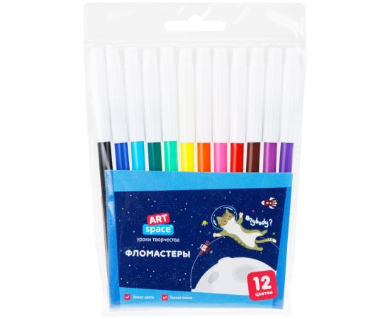 Фломастеры ArtSpace "Космические приключения", 12цв., ПВХ, европодвес, WCP12_26827, 308030