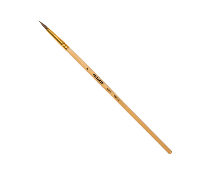 Кисть ПИФАГОР, БЕЛКА, круглая, № 3, деревянная лакированная ручка, с колпачком, 200817