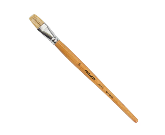 Кисть ПИФАГОР, ЩЕТИНА, плоская, № 16, деревянная лакированная ручка, пакет с подвесом, 200877