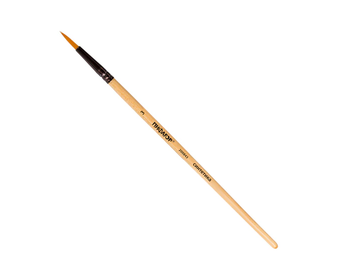 Кисть ПИФАГОР, СИНТЕТИКА, круглая, № 3, деревянная лакированная ручка, с колпачком, 200843