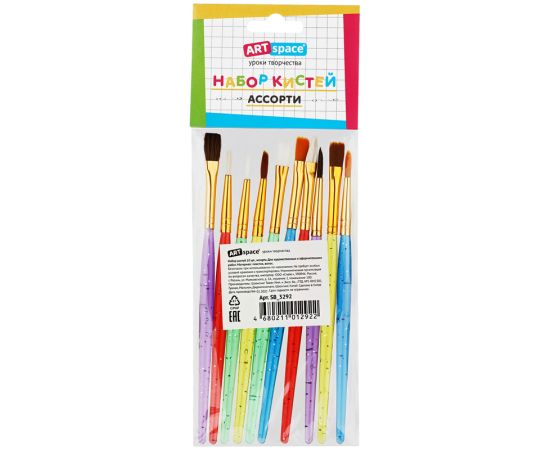 Набор кистей ArtSpace 10шт., пони, щетина, нейлон, круглые, плоские, пакет, европодвес, SB_3292, 205995