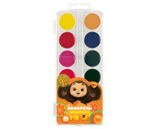Акварель Мульти-Пульти "Чебурашка", медовая, 24 цветов, без кисти, АПЧБ_53004, 357207