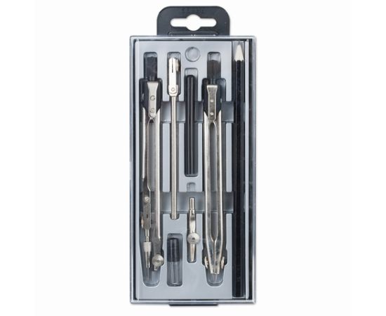 - Комплектация: держатель, запасной винт, карандаш, карандашная вставка, пенал с запасным грифелем, удлинитель, циркуль, циркуль-измеритель