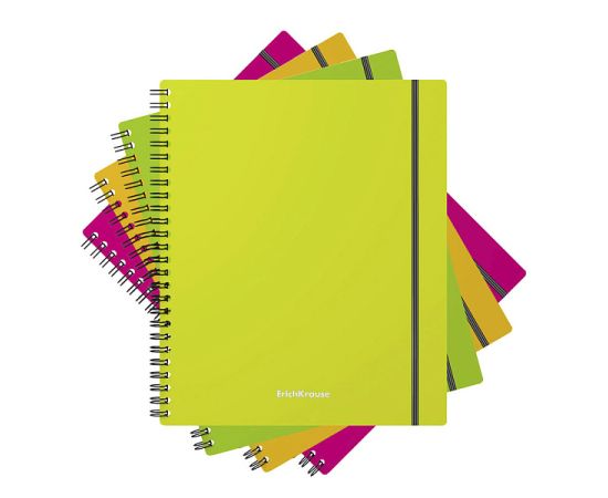 Тетрадь 80л, А5, клетка спираль ERICH KRAUSE Neon пластиковая обложка на резинке ассорти, арт. 50650