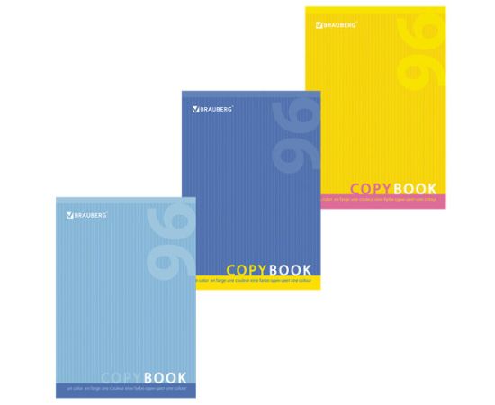 Тетрадь А4, 96 л., BRAUBERG скоба, клетка, обложка картон, ОДИН ЦВЕТ, 401880