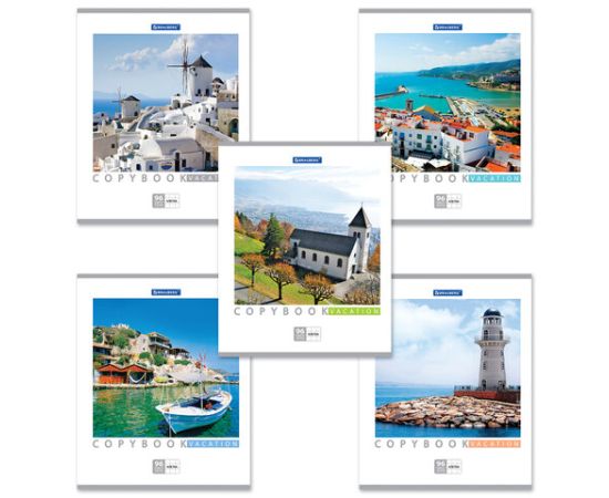 Тетрадь А5, 96 л., BRAUBERG ЭКО, клетка, обложка картон, КАНИКУЛЫ, 401847