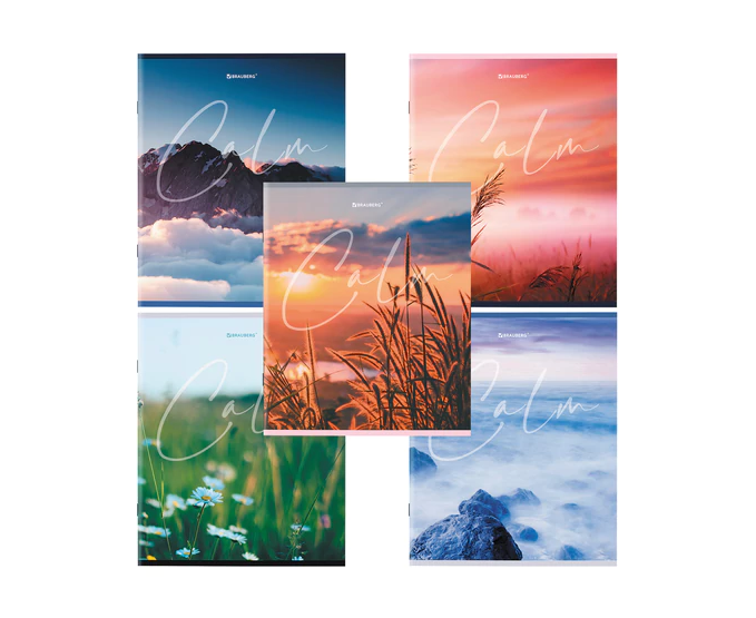 Тетрадь А5 96 л. BRAUBERG скоба, клетка, обложка картон, "Calm" (микс в спайке), 404435