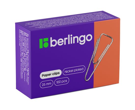 Скрепки 25мм, Berlingo, 100шт., никелированные треугольные, с отогнутым носиком,BK2510n, 115995