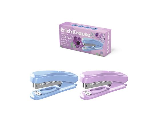 Степлер №10, до 15 листов, ErichKrause Clippy Pastel Bloom, цвет ассорти, 61740