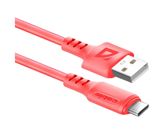 Кабель USB 2.0 (AM) - Type C Defender F207, 1метр, 2.4А, силиконовая оплетка, красный (87106RED)