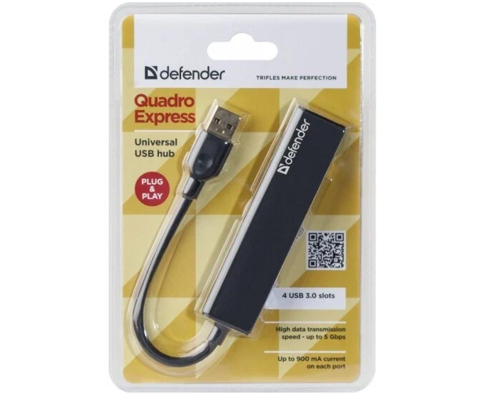 Концентратор (разветвитель) Defender Quadro Express USB3.0, 4 порта (83204)