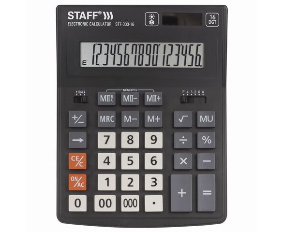 Калькулятор STAFF PLUS настольный STF-333, 16 разрядов, двойное питание, 200x154 мм, 250417