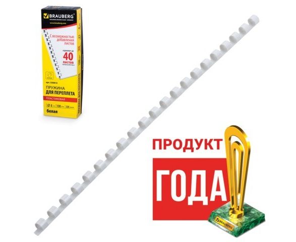 Пружины пласт. д/переплета BRAUBERG, комплект 100шт, 8 мм (для сшивания 21-40л), белые, 530810