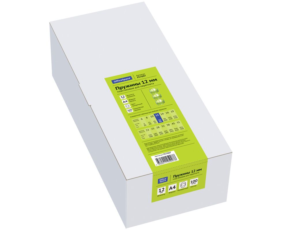 Пружины пластик D=12мм OfficeSpace, прозрачн. бесцветный, 100шт., PC7007, 222447